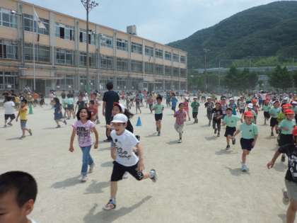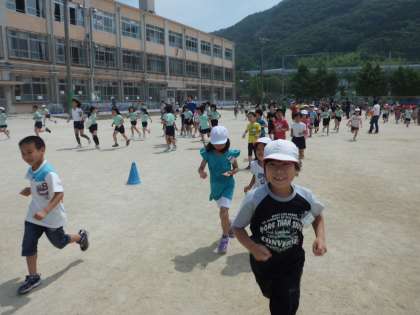 一人ひとりが目標を決めて走るこのマラソンに、子どもたちは楽しみながら取り組んでいました。