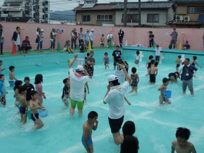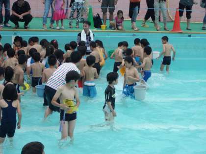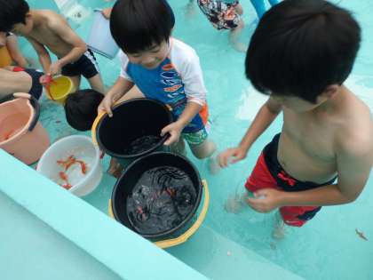一斉に金魚に向かって走り出した子どもたちは、上手に金魚をつかみ、バケツの中はあっという間に金魚でいっぱいになりました!