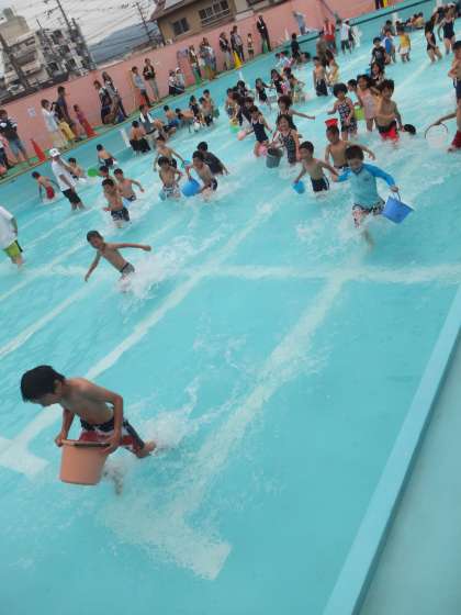 PTA主催で,毎年恒例となっている「魚つかみ大会」が9日の日曜日に開催されました。多くの1年生の児童も集まり,とても楽しそうに魚をおっかけていました。