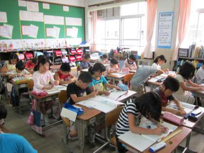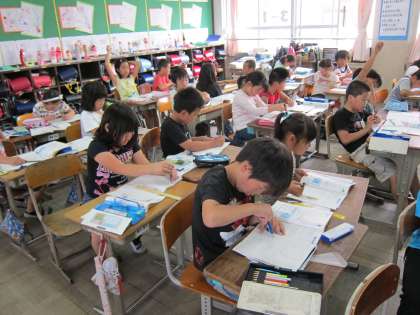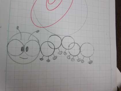 コンパスを使って,円をかくことができるようになってきたので,円をつかって絵をかきました。描く絵の手本を見ながら,半径が何cmの円なのか,どこに中心を取ればいいのかなど考えながら,描いていました。