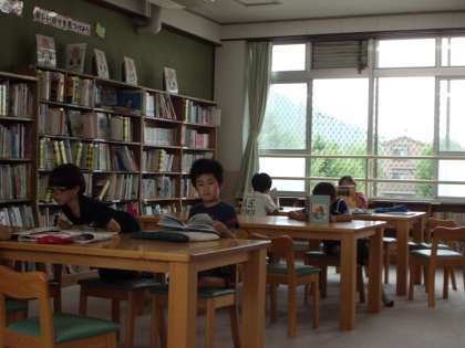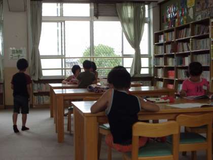 図書室にはいろいろな種類の本や絵本があり、毎週子どもたちは楽しみにしています。