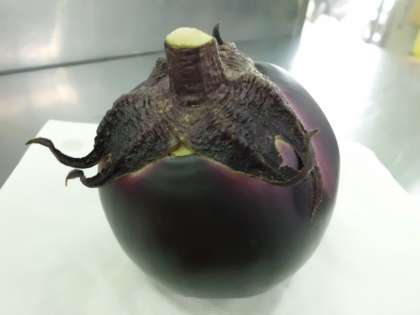 まんまるの賀茂なすを展示していると,子どもたちが不思議そうに見ていました。