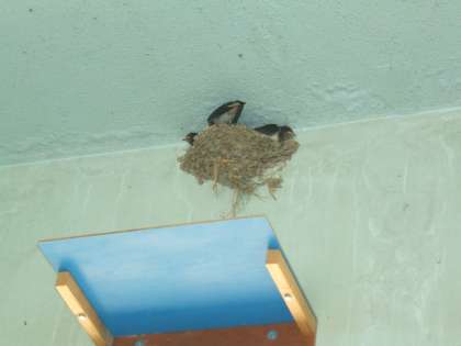 久しぶりにツバメの巣の様子を見てみたところ,小さかったヒナもずいぶん大きくなり,巣からはみ出すようになってきています。羽も親鳥と同じ色になってきています。巣立ちの時期が迫ってきているのかもしれません。もうしばらく温かく見守って行きたいと思っています。