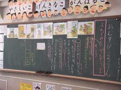 こくごでは,「おむすび ころりん」を学習しています。この学習は1ねんせいの子どもたちに『よむ力』を身につけられるよう取り組んでいきます。7・5調で物語が書かれているので,リズムよく読むことができ,子どもたちも物語に入り込みやすくなっています♪これからの学習で,ただ読むのではなく,読む場面や,言葉によってどのように読んだらいいのかを考えることで,物語を深く読みとっていきます。