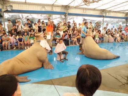 退所式後、楽しみにしていた鳥羽水族館へ行きました。セイウチショーではK君がセイウチの和投げに登場して拍手をたくさんいただきました。