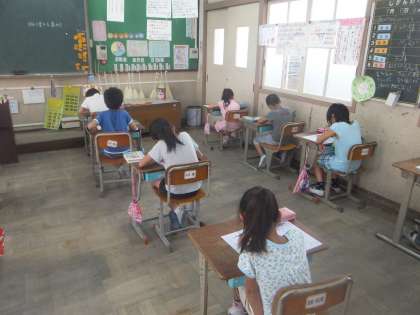 今日は4月から夏までに学習した漢字の50問テストをしました。