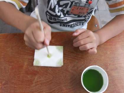 など,水に色がついていく様子を楽しんでいました。色水ができた後は,和紙に色をつけていきました☆