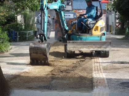 入口通路の上面を取り除く工事がありました。明日からアスファルトを入れる工事になります。ご不便をおかけしますが、学校へは南門運動場側からお入りください。