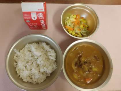 大人気のカレーの日は,いつもより早く食べ終わります。