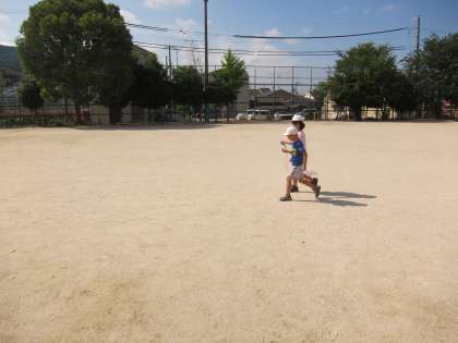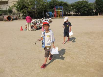 ストップウォッチを使う練習をしました。学校では,デジタルの時計をあまり見かけることがないですが,読み方は慣れたものです。100mを歩くのに,どれくらいの時間がかかるのかを,計ってみました。初めてストップウォッチを触る子もいて,興味深そうにボタンを押していました。