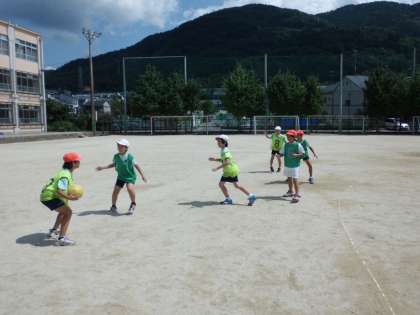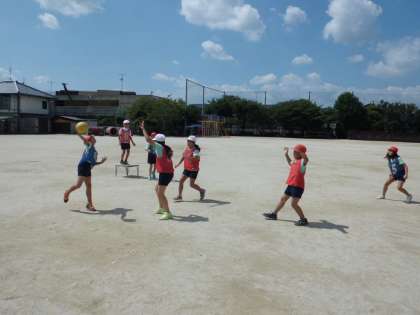 今,4年生の体育では,ポートボールをしています。