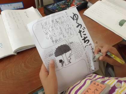 と,クラスで飛び出てきました!そこで「みんなで,うさぎさんとたぬきさんは何を思っていたのか考えてみようね。」と話し合いました。
