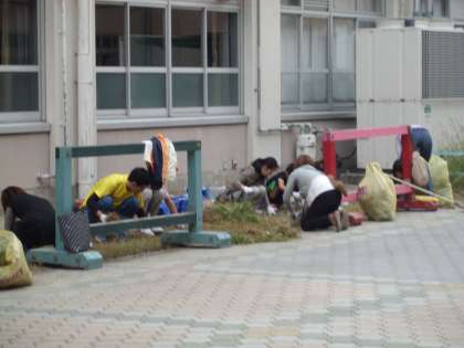 10月5日(土)PTAによる草引きがありました。体育館周り,インターロッキング周辺,北校舎北側の雑草を抜いてもらいました。とても美しくなりました。みなさんありがとうございました。
