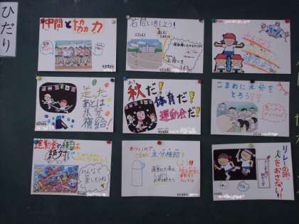 月曜日は,委員会活動がありました。安全委員会では,運動会に近づき『安全にケガがないようにしたい!』という思いから,運動会に向けて自分たちの安全を啓発するためのポスターを作りました。また運動会の楽しみが増すような,すてきな姿です♪