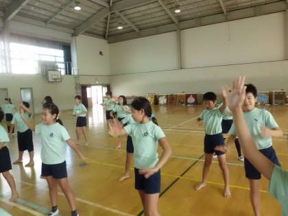 今までの練習で,踊りはオッケーと思っていた子どもたちも,移動を覚えながらの練習に,苦労しているようです。