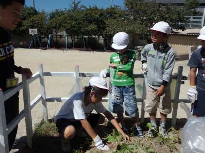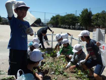 今年の厳しい暑さや激しい台風の風を乗り越えてきたからか,つるが大きく伸び,葉も鮮やかな緑色をしています。
