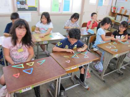 でした。また,二等辺三角形,正三角形という言葉も確認しました。新しい単元を学習するのは,わくわくするものです。子ども達は楽しんで学習していました。