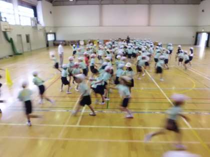 今日は,ダンスの練習も少しずつできるようになってきましたので,ダンスから競技に移る移動の練習をしました。移動の後は,競技の順に整列です。短い時間で正確に並ぶことができてきましたね☆