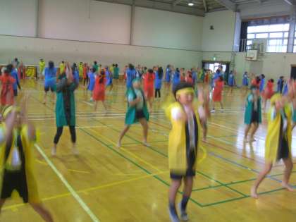 今日は朝から雨が降っていたので,ロックソーランの練習は体育館で行いました。主な目当ては細かいところの精度を上げるというものでした。腰の落とし方,手のひらや指の向き,声の大きさなどに気をつけて行いました。昨日までは良くなるまで2回から3回はやり直しをしないといけなかったのですが,今日は気持ちも入っていて1回でしっかり踊ることができました。生憎,明日の運動会は延期になってしまいましたが,30日の運動会には,素晴らしいロックソーランが見てもらえそうです。