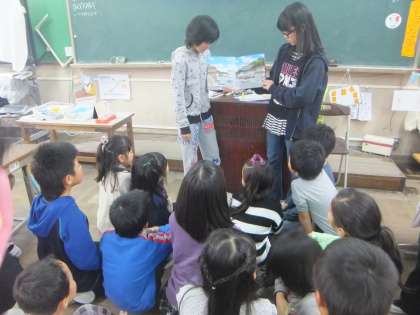 13日(水)の読書タイムに,5・6年生の図書委員さんが教室に来てくれて,絵本の読み聞かせをしてくれました。