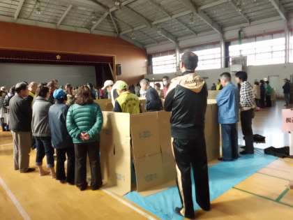 本日大宅学区の自主防災がありました。各町内から人が集まり、AEDや三角巾の使い方の講習会がありました。体育館では避難した時の段ボールブースを製作しました。早朝よりご苦労様でした。