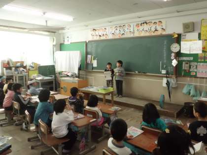 わくわくフェスティバルへの招待状を1年生に渡しました。