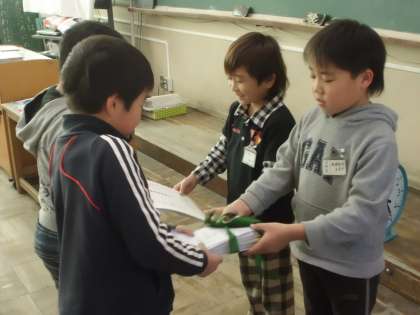 1年生に手渡す前は緊張でどきどきしていましたが,喜ぶ1年生を見てほっとしたようです。当日が楽しみですね。