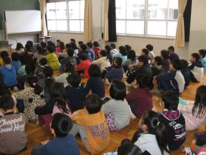 明日に行われるフレッシュ・タイムの練習をふれあいホールで行いました。今回は社会科で学習している京都府の中の市〈京都市や宮津市・綾部市など〉を俳句にして画像と共に発表します。大きな声で発表してくれる事と思います。楽しみです。