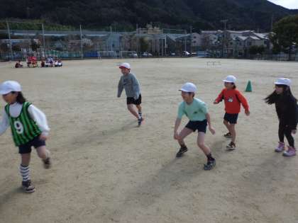 前回はパスの仕方や動き方を練習しました。その成果なのか,とてもスピーディにボールを動かすことができていました。