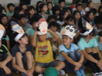 今日の6時間目に「1年生を迎える会」の練習をしました。今回は,劇をする児童にキャラクターのお面をつけてもらって本番と同じようにしました。劇をする児童はキャラクターになりきって演技をしていました。本番がとても楽しみになってきました。