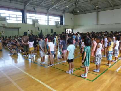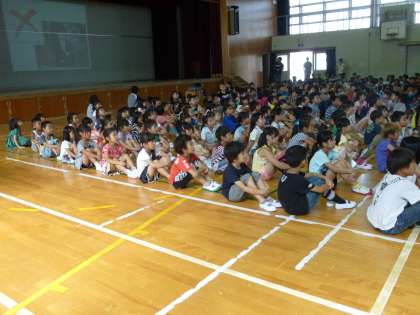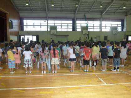 あついなか, 3ねんせいと 6ねんせいの ふれっしゅたいむの はっぴょうや,いいんかいのはっぴょうを おへそを むけて きくことが できて,すばらしかったです!