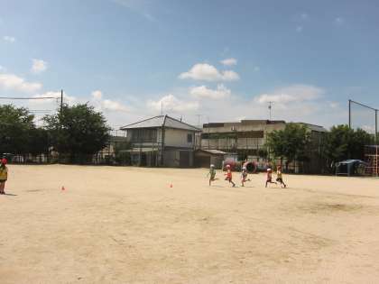 今日は,100mトラックを使ったリレーにチャレンジしました。バトンを受け渡すゾーンも設けて,前に進みながらバトンをもらう練習もしました。進み始めるタイミングが難しく,バトンをもらう頃にはゾーンから出てしまっている子もいました。どの辺から走り出したらいいのかは,これからの練習でつかんでいきたいですね。