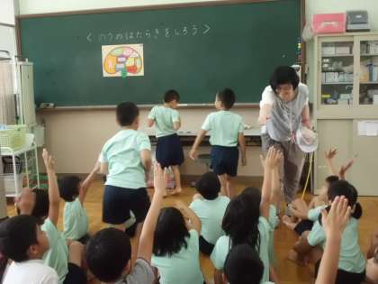 最後に,脳と同じ柔らかさの「とうふ」をさわって