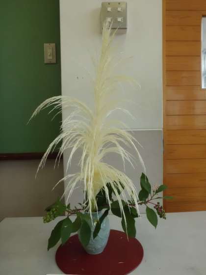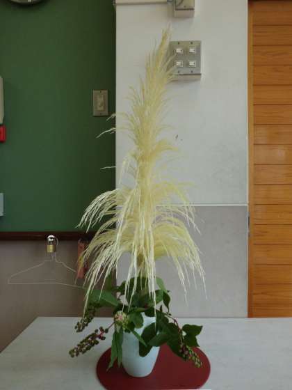 パンパスグラスとアメリカヤマゴボウをつぼに生けました。パンパスグラスは南アメリカ原産で,白くてやわらかい穂が印象的でした。子ども達も,その感触を楽しんでいました。