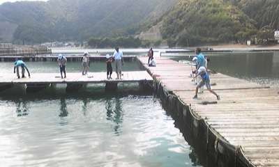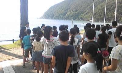 若狭湾青少年自然の家での入所式をすませ,これからオリエンテーションです。