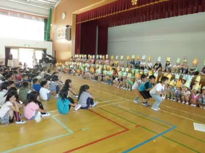 出し物の最後には,「友だち」の歌を送りました。これから一緒に仲良くしていき,困ったことがあったら,言ってほしいと思います!