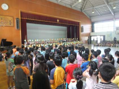 今まで一生懸命練習した「あの青い空のように」と「Hello」の歌をしっかり心をこめて歌うことができました。