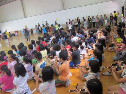 今回は,1年生に楽しんでもらうために,「ラッスンゴレライ」を使いながらの発表をしました。はじめは,なかなか照れくさそうにしていましたが,だんだんとノッてきて,大きな声で発表できる様になりました。1年生も笑顔で喜んでくれていました。