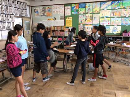6年生英語科「We are good friends.」の単元でipadのロイロノートを使って作成していた桃太郎のオリジナルストーリーが完成しました。このクラスでは,何故かPeach boyとともに闘いに行く仲間はエイリアンとライオンとゴリラという設定でとても面白いストーリーができあがりました。次の時間は上映会をして表現を聞き合ったり,感想を伝えたりする予定です。