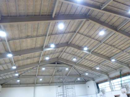体育館の照明がLEDになりました。今までよりも速く点灯し、また明るくなりました。
