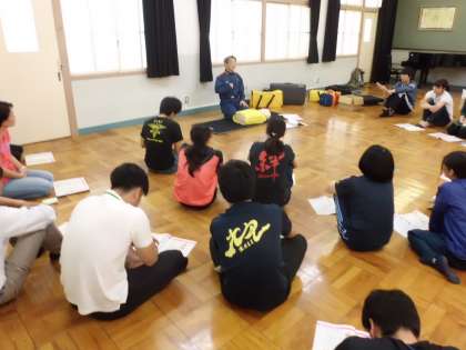 水泳学習に向けて,教職員対象の救急救命研修会を実施しました。消防署の方々から緊急時の対処方法について学びました。