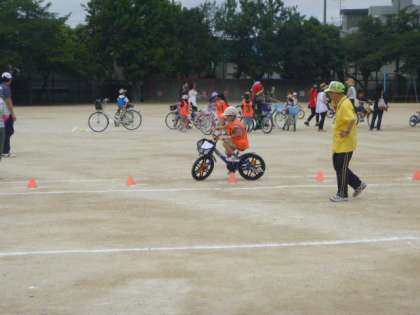 交通安全対策協議会の皆様とPTAの皆様のお世話になり,希望者による自転車安全教室をおこないました。はじめは,かさをさしながらや携帯電話をしながらの自転車の運転はダメということから勉強しました。間違った運転演技を実際におこなってもいただきました。その後,模擬コースを交通ルールにのっとり運転したり,ジグザグコースで運転技術を確かめたりして,実技をおこないました。自転車の安全点検もおこなっていただきました。この自転車安全教室で学習したことを実際の生活場面に生かしてほしいと強く願っています。