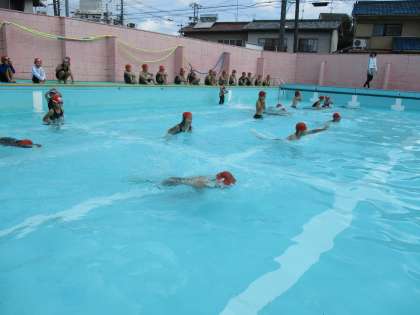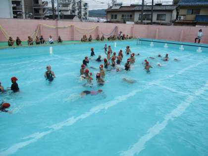 7月14日(木)に水遊びがありました。授業で水遊びをするのはこれで最後です。今まで練習してきたロケットやけのびを中心に,楽しく学習することができました。