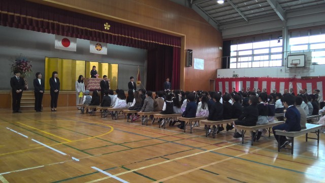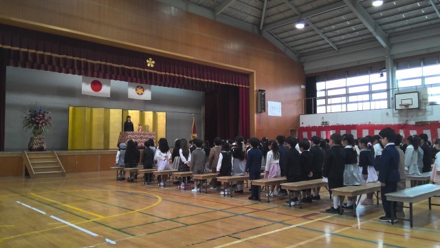 入学式の様子です。よい姿勢で校長先生のお話を聞いている新入生がたくさんいました。