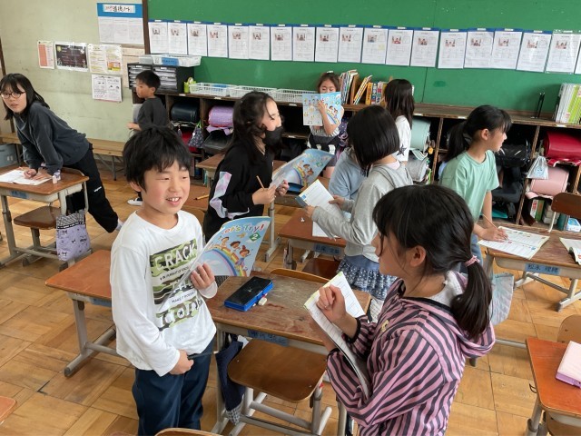 その後「Do you like ○○?」の伝えあいをしました。