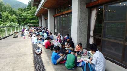 みんなでつくった嵯峨小学校5年生の旗が山の家の風に吹かれ,力強く揺れています!5年生はこれから4日間,学年目標である「Try」を合言葉に活動していきます。自分がTry!,なかまとTry!,どんなドラマが待ち受けているのか楽しみです。朝は少し不安気味な表情の子どもたちでしたが,お家の方がつくってくださったお弁当にほっこり♪笑顔があふれていました。朝早くからご準備ありがとうございました。