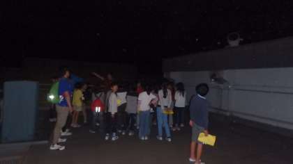 連絡を受けてすぐに天体観測の場所へ駆けつけました。目が慣れていないせいか?空を見上げてもそんなに驚きはありませんでした。まずは,職員の方がレーザーポインターを使いながら方角と星の名称を教えてくださいました。肉眼でも北斗七星や北極星,夏の大三角などがよく見えました。次に,天体望遠鏡ゾーンへ行くとだんだん目が慣れてきたのか?星が急に増えてきたように感じました。