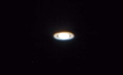 大きな天体望遠鏡が木星や土星の方向に合わせてありました。のぞくと土星のリングがはっきりと確認できました!衛星写真や図鑑で見ていたあの姿が目の前にあるのです!興奮しました!そして,感動しました!満天の星空をホームページでお伝えできないのが残念です…。しかし,何とか撮影に成功した土星をご覧ください。