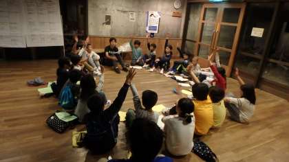 宿泊棟に戻ると,就寝準備が始まっていました。登山でもうクタクタでしょう?今夜はぐっすりと眠って,いい夢を見てほしいです。一方,リーダーたちはミーティングをしていました。昨日の反省をいかして,今日は成長が見られた班が多かったようです。