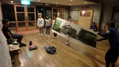 2日目の活動が終わろうとしています。今日も充実した1日でした。明日は,花背山の家で生活を共にしている学校が合同で朝の集いを行う日です。リーダーの代表が嵯峨小学校の学校紹介をするのですが…明日のために遅くまで最終リハーサルをしていました。